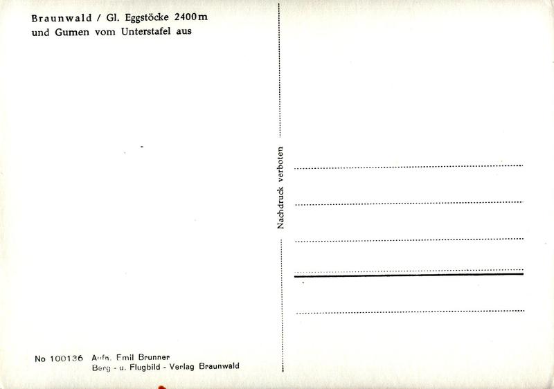 Zustandsbeschreibung der Ansichtskarte "Braunwald / Gl. Eggstöcke und Gumen vom Unterstafel aus"