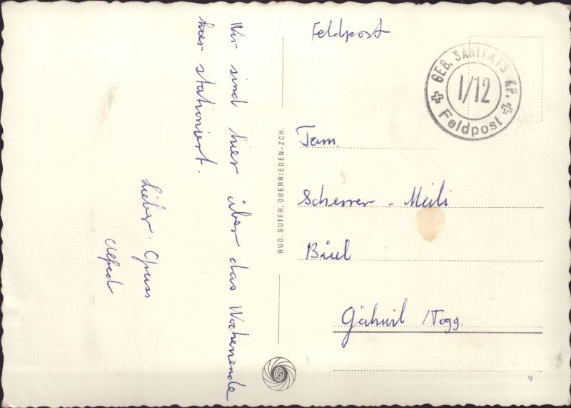 Karte am rechten Rand geknickt, Feldpost