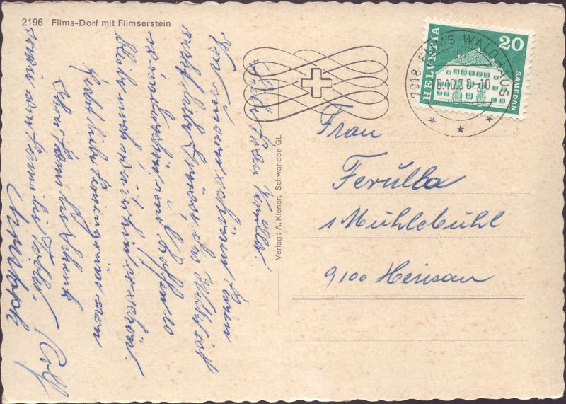 Zustandsbeschreibung der Ansichtskarte "Flims-Dorf mit Flimserstein"