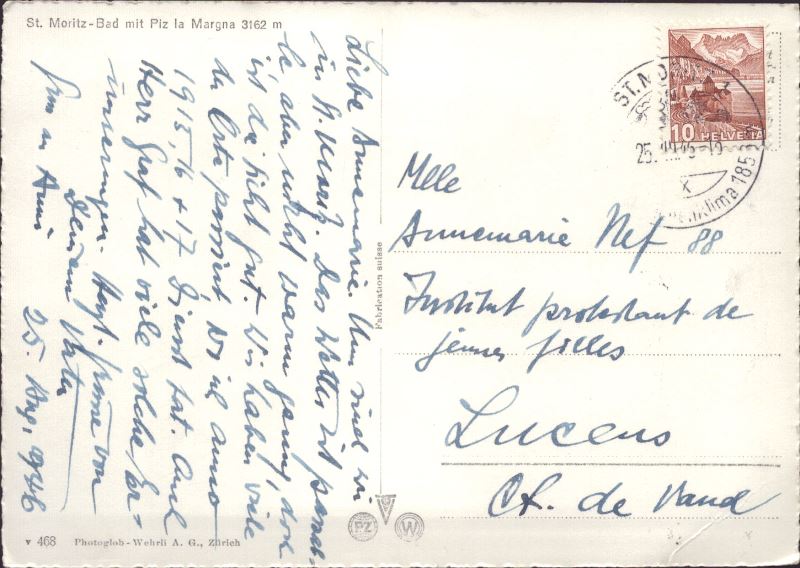 Zustandsbeschreibung der Ansichtskarte "St. Moritz-Bad mit Piz la Margna (3162 m)"