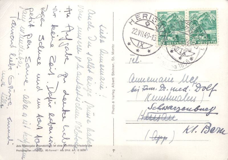 Zustandsbeschreibung der Ansichtskarte "St. Moritzersee und St. Moritz"