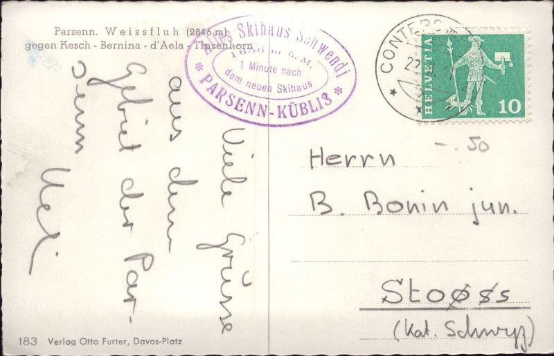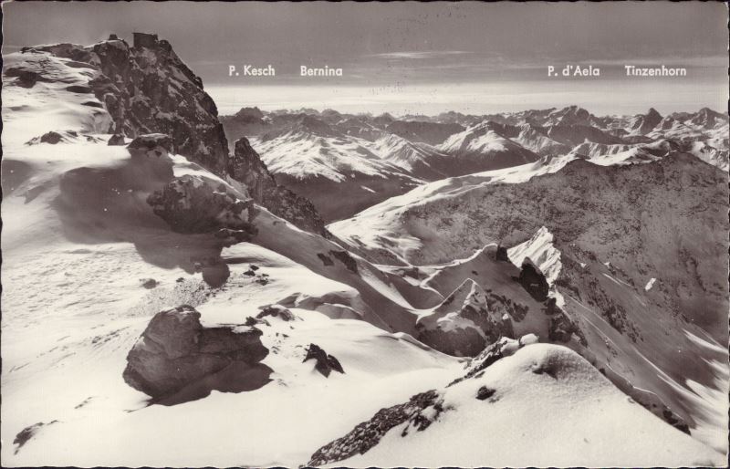 Zustandsbeschreibung der Ansichtskarte "Persenn, Weissfluh gegen Kesch - Bernina - d`Aela - Tinzenhorn"