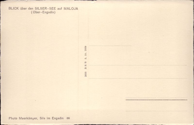 Zustandsbeschreibung der Ansichtskarte "Blick über den Silser - See auf Maloja"