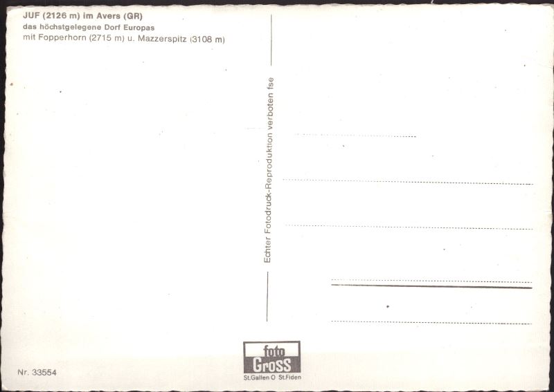 Zustandsbeschreibung der Ansichtskarte "Juf im Avers (2126 m)"