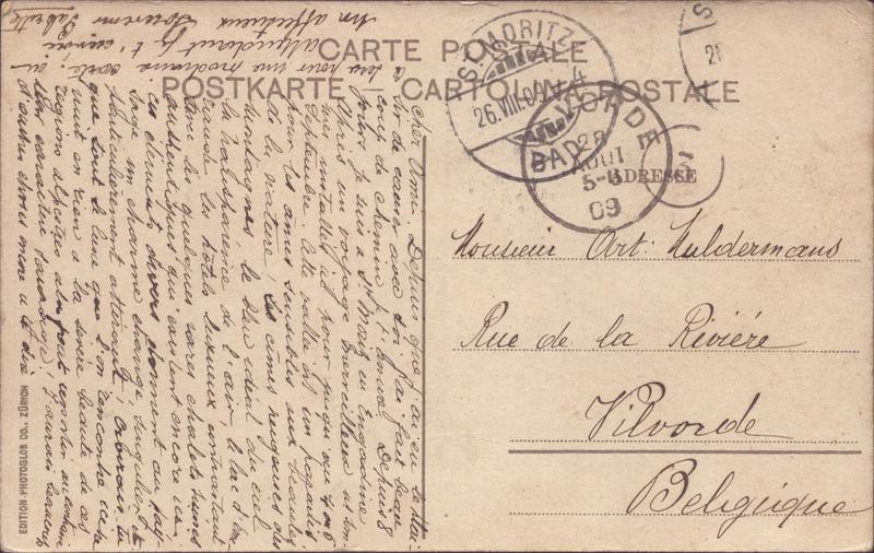 Zustandsbeschreibung der Ansichtskarte "St. Moritz-Bad und Piz della Margna"