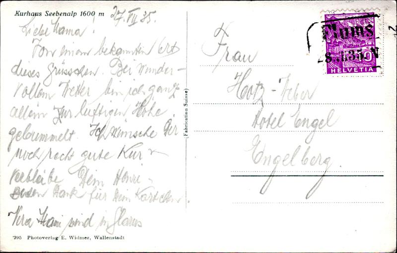 Zustandsbeschreibung der Ansichtskarte "Kurhaus Seebenalp"