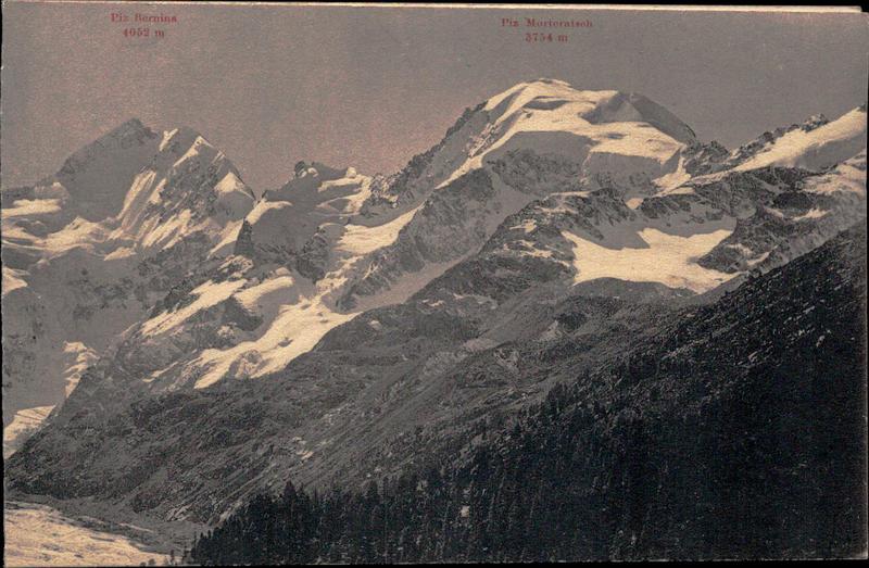 Zustandsbeschreibung der Ansichtskarte "Ober-Engadin mit Morteratschgletscher mit Berninagruppe v. d. Berninabahn aus"