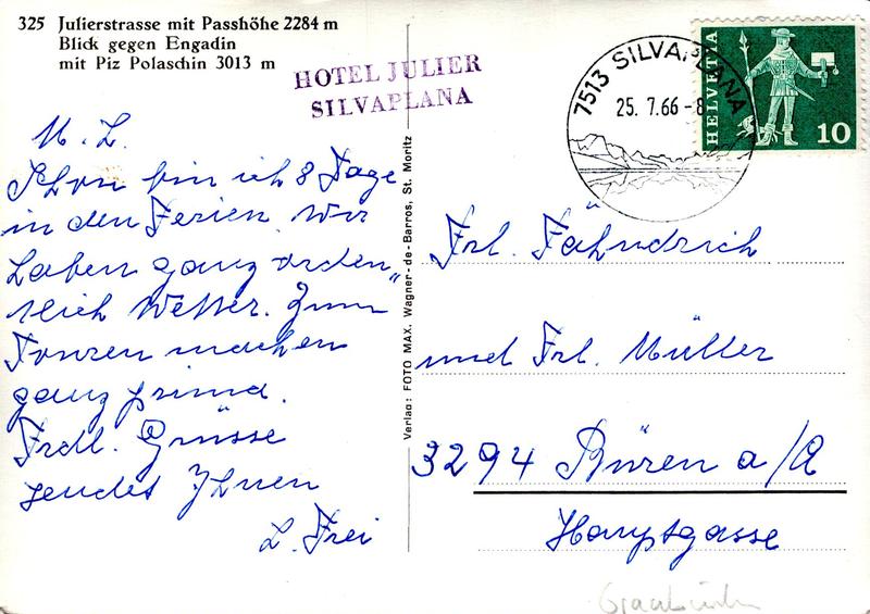 Zustandsbeschreibung der Ansichtskarte "Julierstrasse mit Passhöhe"