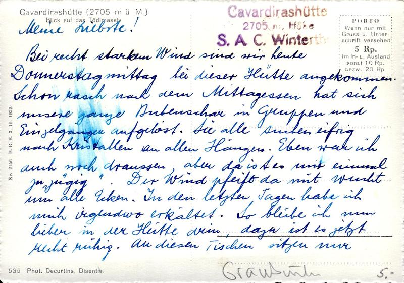 Zustandsbeschreibung der Ansichtskarte "Cavardirashütte, Blick auf das Tödimassiv"
