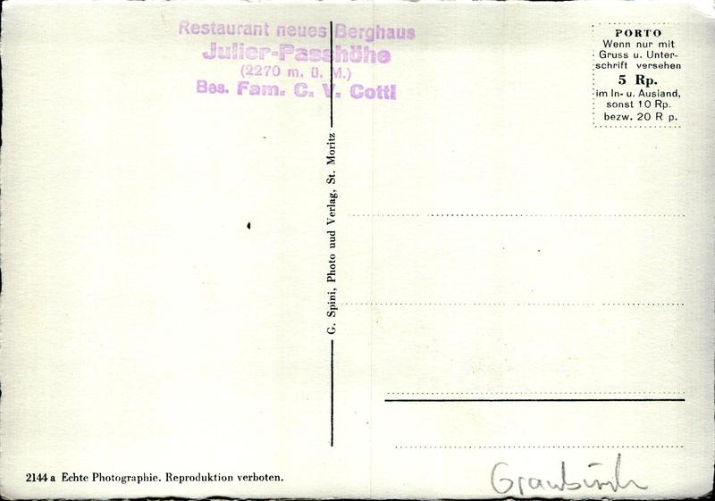 Zustandsbeschreibung der Ansichtskarte "Julierpass und Julierhospiz"