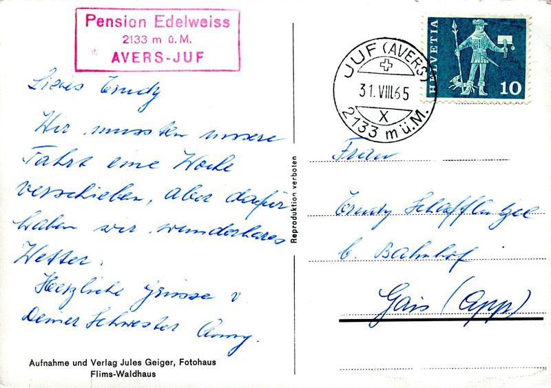 Zustandsbeschreibung der Ansichtskarte "Juf mit Piz Turba"