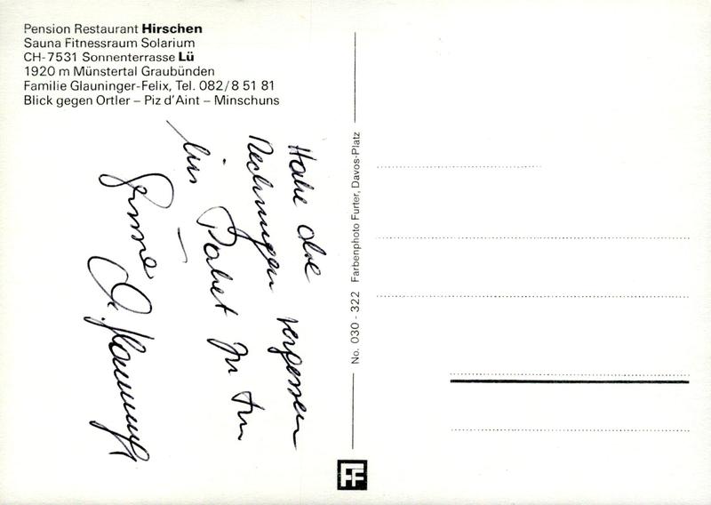 Zustandsbeschreibung der Ansichtskarte "Pension Hirschen Lü, Val Müstair"