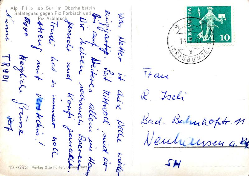Zustandsbeschreibung der Ansichtskarte "Alp Flix ob Sur"