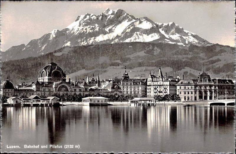 Zustandsbeschreibung der Ansichtskarte "Luzern Bahnhof und Pilatus (2132 m)"