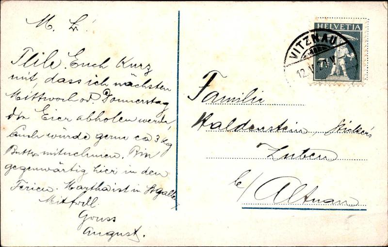 Zustandsbeschreibung der Ansichtskarte "Ferienheim Grubisalm ob Vitznau mit den Alpen"