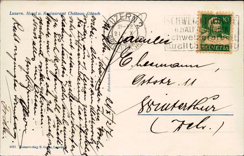 Zustandsbeschreibung der Ansichtskarte "Hotel - Restaurant Schloss Gütsch (Luzern)"