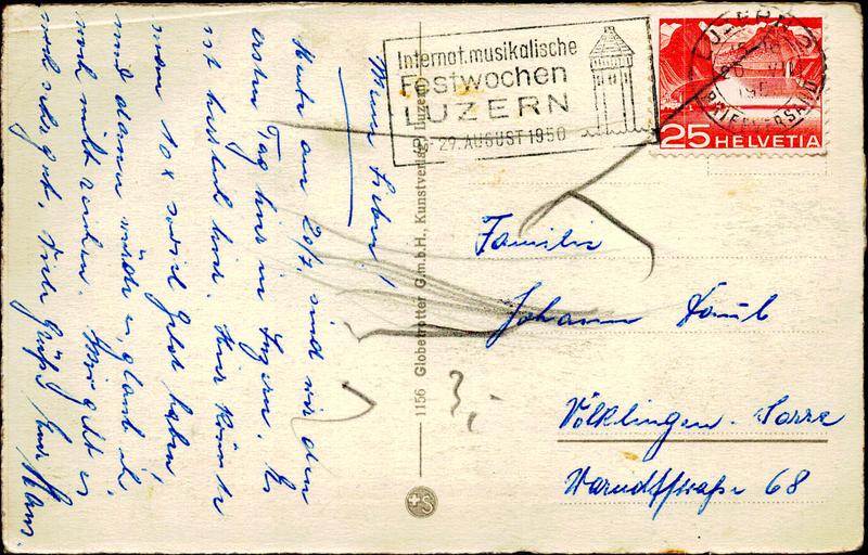Zustandsbeschreibung der Ansichtskarte "Luzern mit den Alpen"