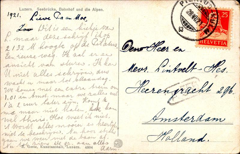 Zustandsbeschreibung der Ansichtskarte "Luzern - Seebrücke, Bahnhof und die Alpen"