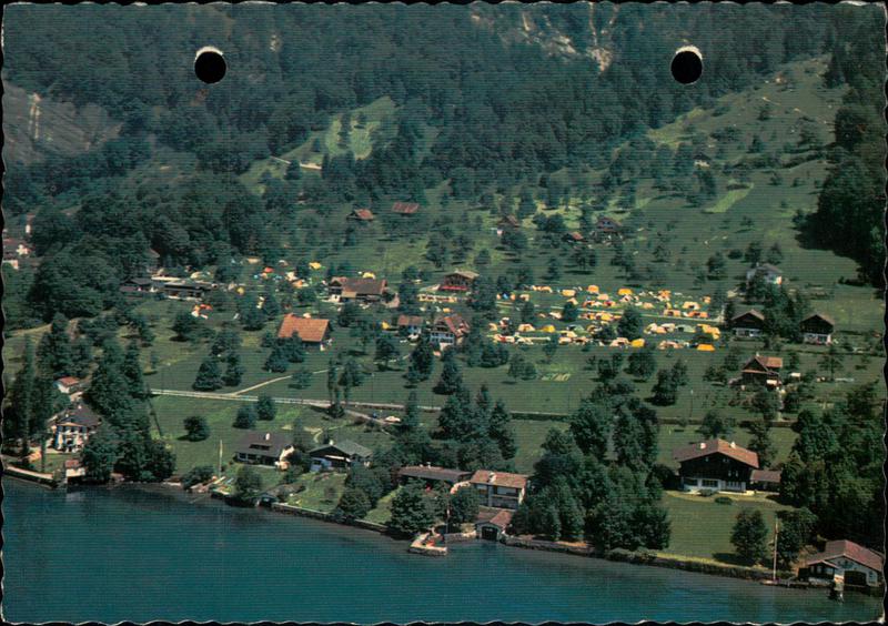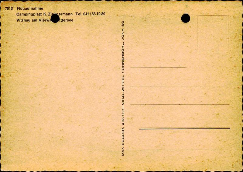 Zustandsbeschreibung der Ansichtskarte "Campingplatz K.Zimmermann, Vitznau am Vierwaldstättersee - Flugaufnahm"