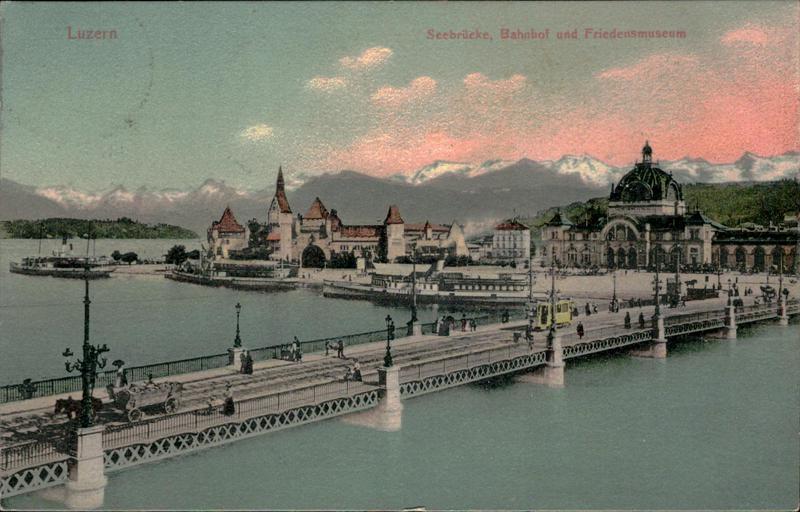 Luzern - Seebrücke, Bahnhof und Friedensmuseum