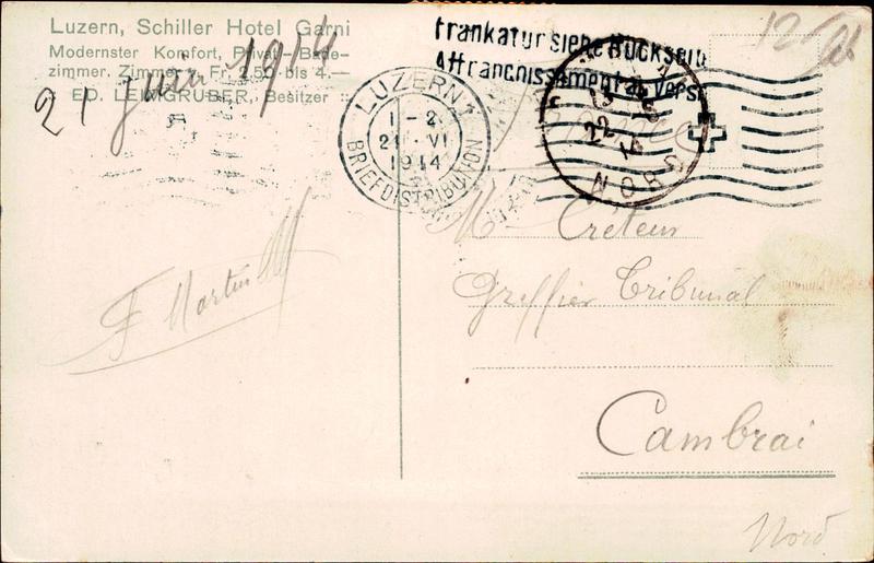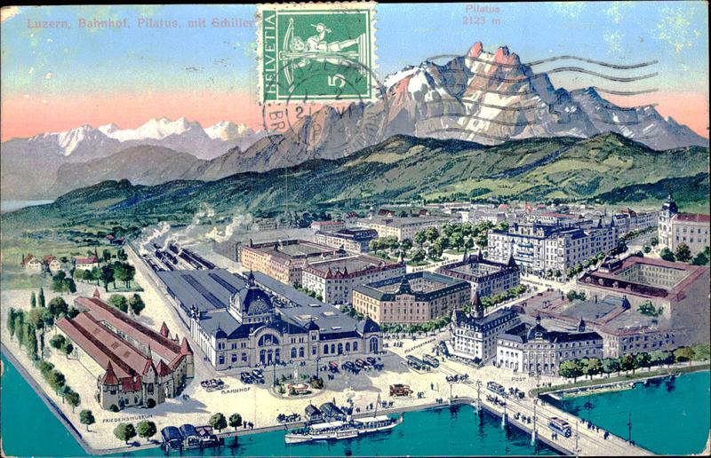 Zustandsbeschreibung der Ansichtskarte "Luzern, Bahnhof, Pilatus mit Schiller"