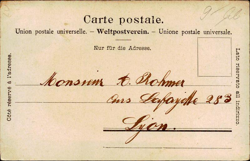 Altersbedingt gebräunt, Ecken bestossen, Stempelflecken auf Vorderseite, Ecken geknickt