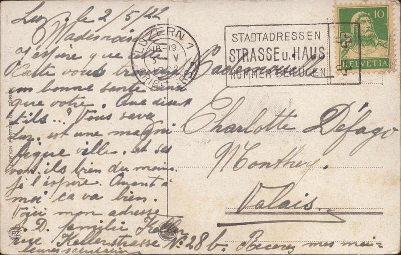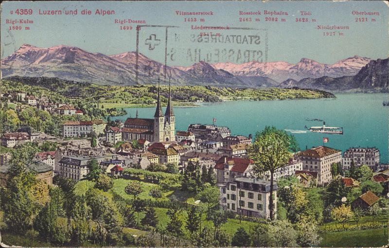 Zustandsbeschreibung der Ansichtskarte "Luzern und die Alpen"