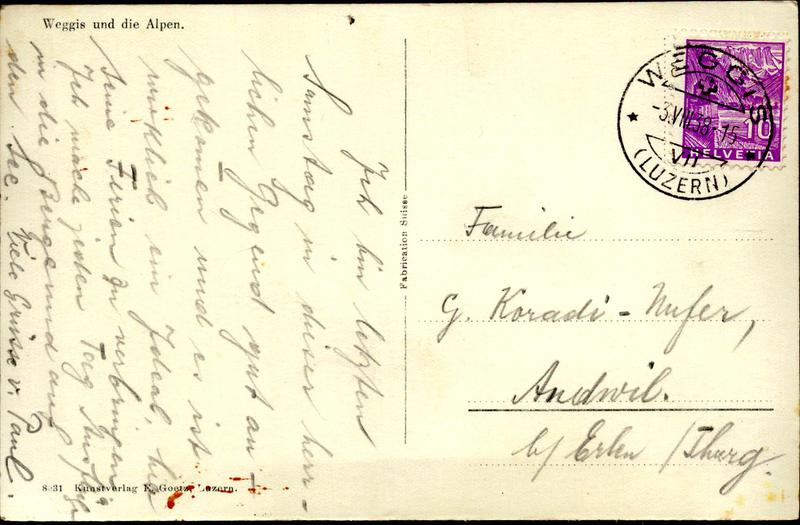 Zustandsbeschreibung der Ansichtskarte "Weggis und die Alpen."