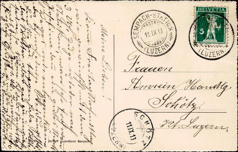 Zustandsbeschreibung der Ansichtskarte "Pfarrkirche Sempach, Firmung 1913"
