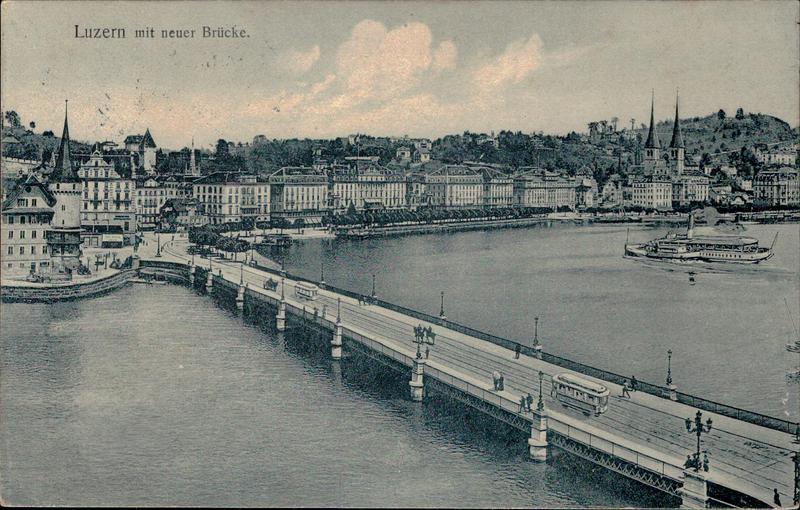 Zustandsbeschreibung der Ansichtskarte "Luzern mit neuer Brücke."