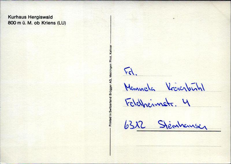 Zustandsbeschreibung der Ansichtskarte "Kriens, Kurhaus Hergiswald"