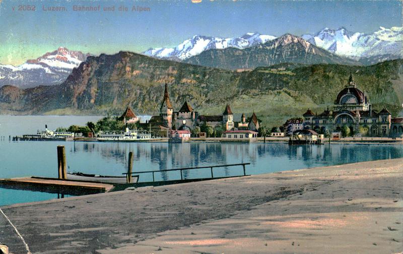 Zustandsbeschreibung der Ansichtskarte "Luzern, Bahnhof und die Alpen"