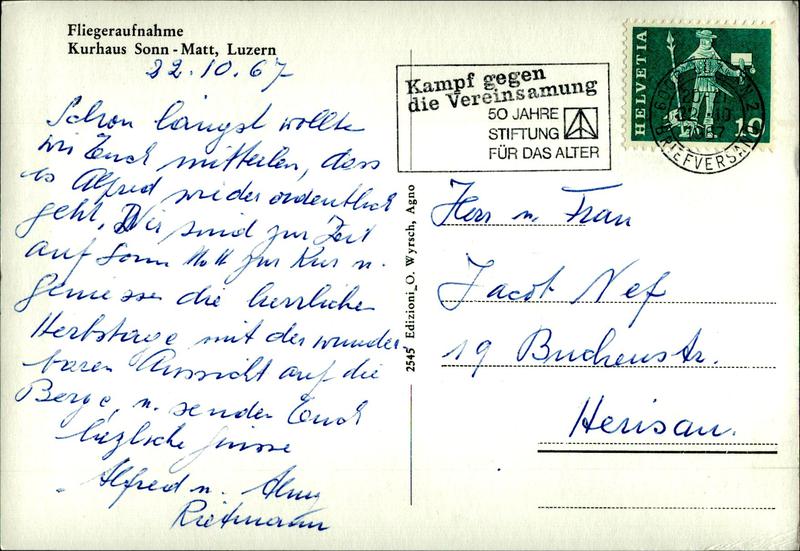 Zustandsbeschreibung der Ansichtskarte "Kurhaus Sonnmatt - Luzern Fliegeraufnahme"