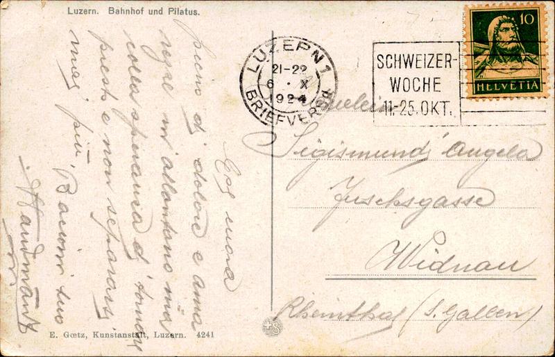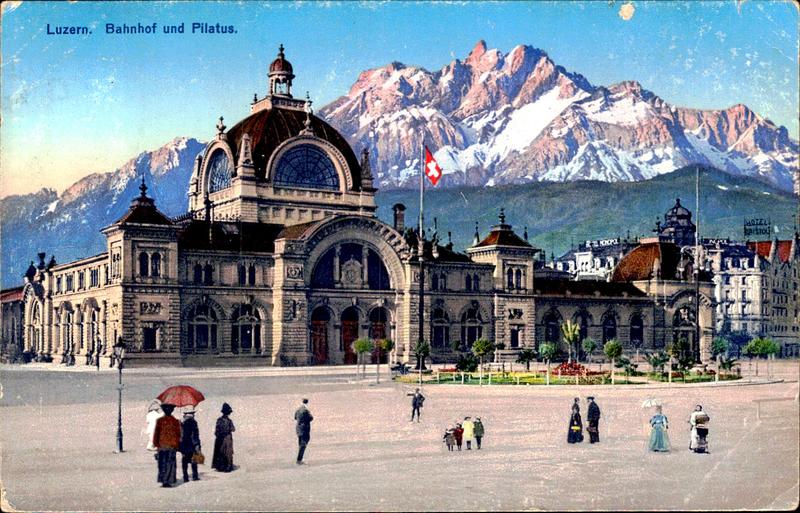 Zustandsbeschreibung der Ansichtskarte "Luzern, Bahnhof und Pilatus"
