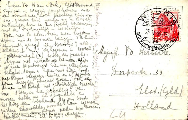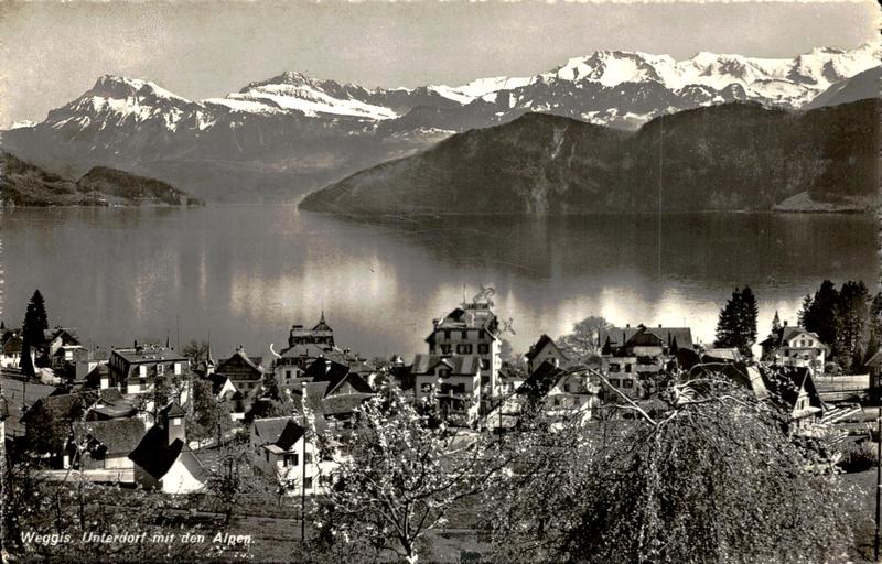 Zustandsbeschreibung der Ansichtskarte "Weggis, Unterdorf mit den Alpen"