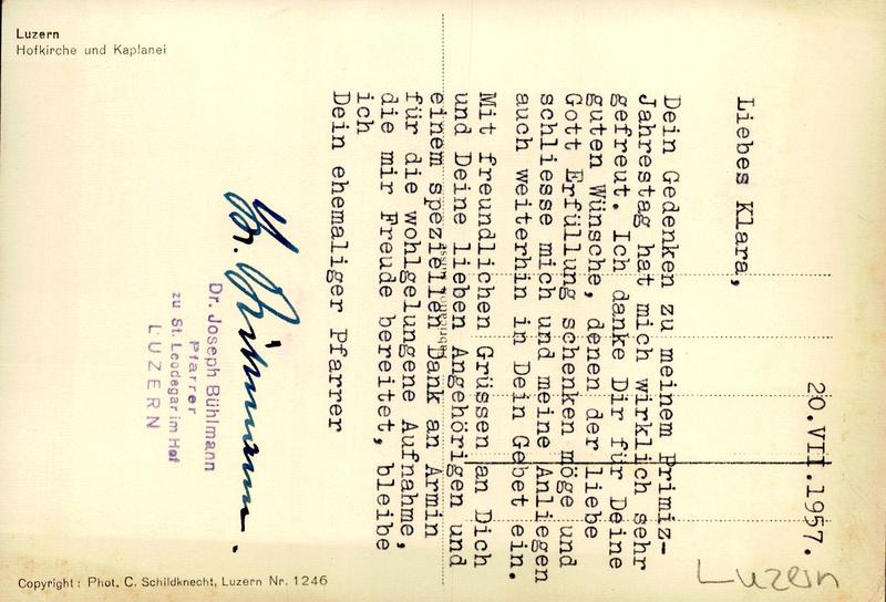 Zustandsbeschreibung der Ansichtskarte "Luzern, Hofkirche und Kaplanei"