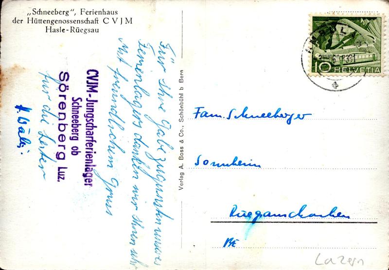 Zustandsbeschreibung der Ansichtskarte ""Schneeberg", Ferienhaus der Hüttengenossenschaft CVJM, Hasle-Rüegsau"