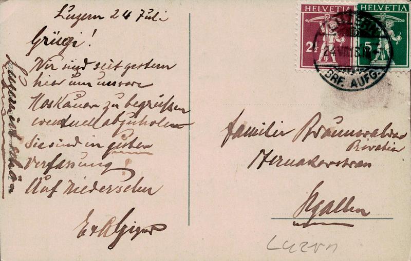 Zustandsbeschreibung der Ansichtskarte "Luzern, Unfallversicherungsgebäude und die Alpen"