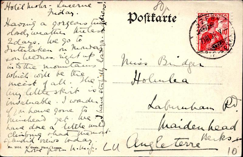 Zustandsbeschreibung der Ansichtskarte "Luzern und die Alpen."