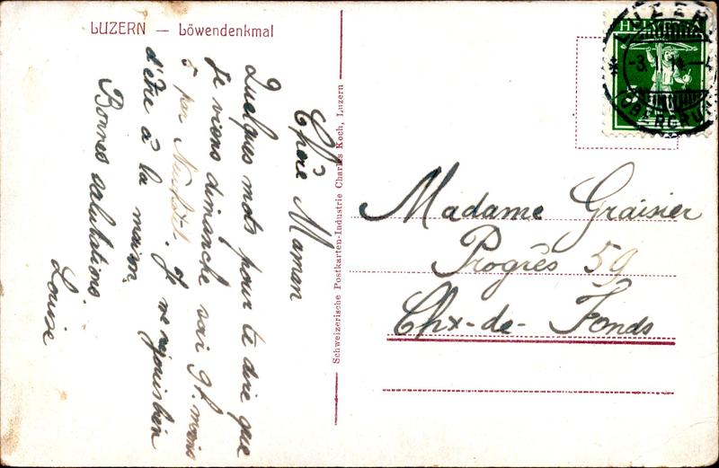 Zustandsbeschreibung der Ansichtskarte "Luzern - Löwendenkmal"