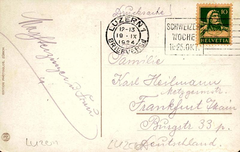 Vorschau: Luzern und die Alpen vor 1924 Vorderseite Vorschau: Luzern und die Alpen vor 1924 Rückseite