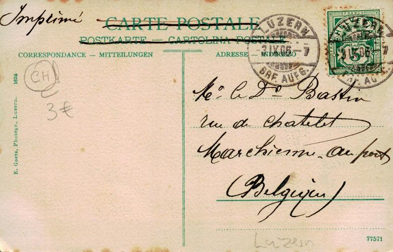 Kapellbrücke mit Wasserturm, Luzern vor 1905 Rückseite