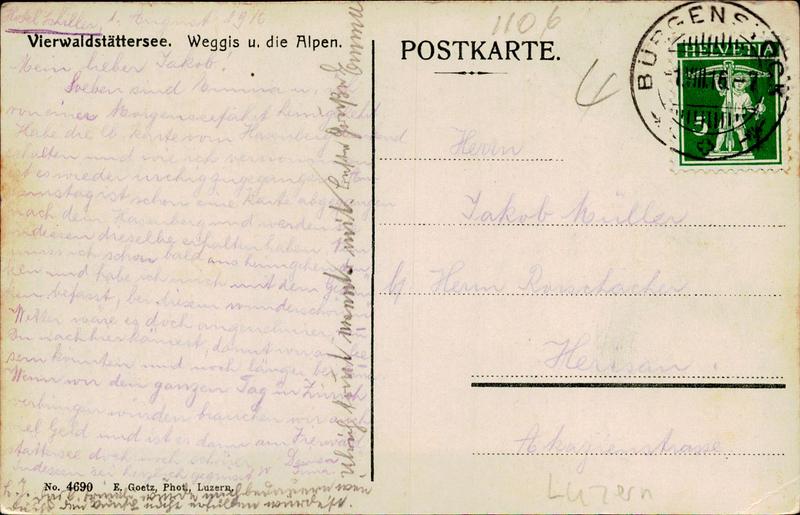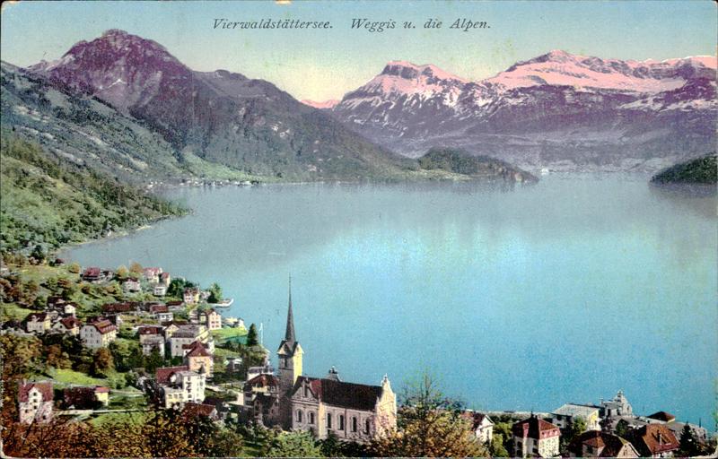 Zustandsbeschreibung der Ansichtskarte "Weggis und die Alpen."