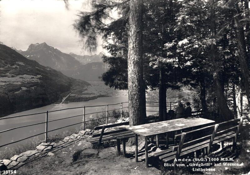 Zustandsbeschreibung der Ansichtskarte "Amden, Blick vom Giregärtli auf Weesen & Linthebene"