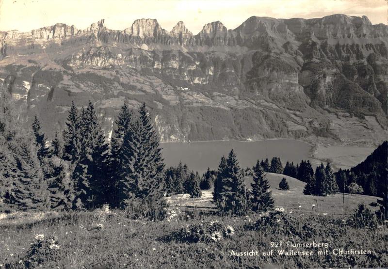 Zustandsbeschreibung der Ansichtskarte "Flumserberg: Aussicht auf Walensee mit Churfirsten"