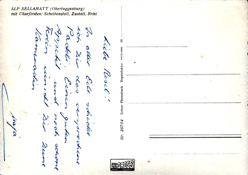 Zustandsbeschreibung der Ansichtskarte "Alp Selamatt (Obertoggenburg) mit Churfirsten: Schreibenstoll, Zustoll, Brisi"