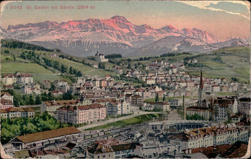 Zustandsbeschreibung der Ansichtskarte "St. Gallen mit Säntis (2504 m)"