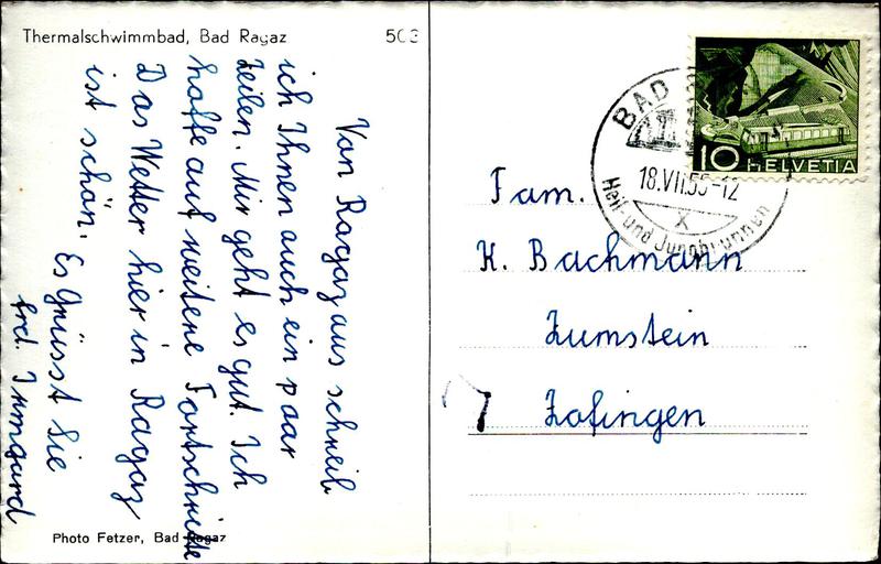 Zustandsbeschreibung der Ansichtskarte "Thermalschwimmbad (Bad Ragaz)"