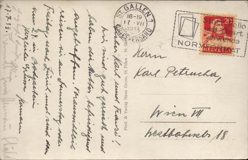 Zustandsbeschreibung der Ansichtskarte "St. Gallen, mit Freudenberg und Säntis"