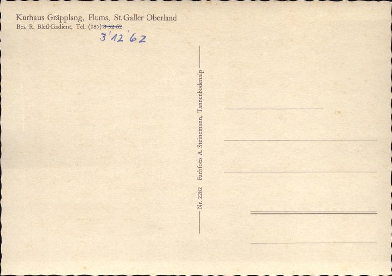 Zustandsbeschreibung der Ansichtskarte "Kurhaus Gräpplang, Flums"
